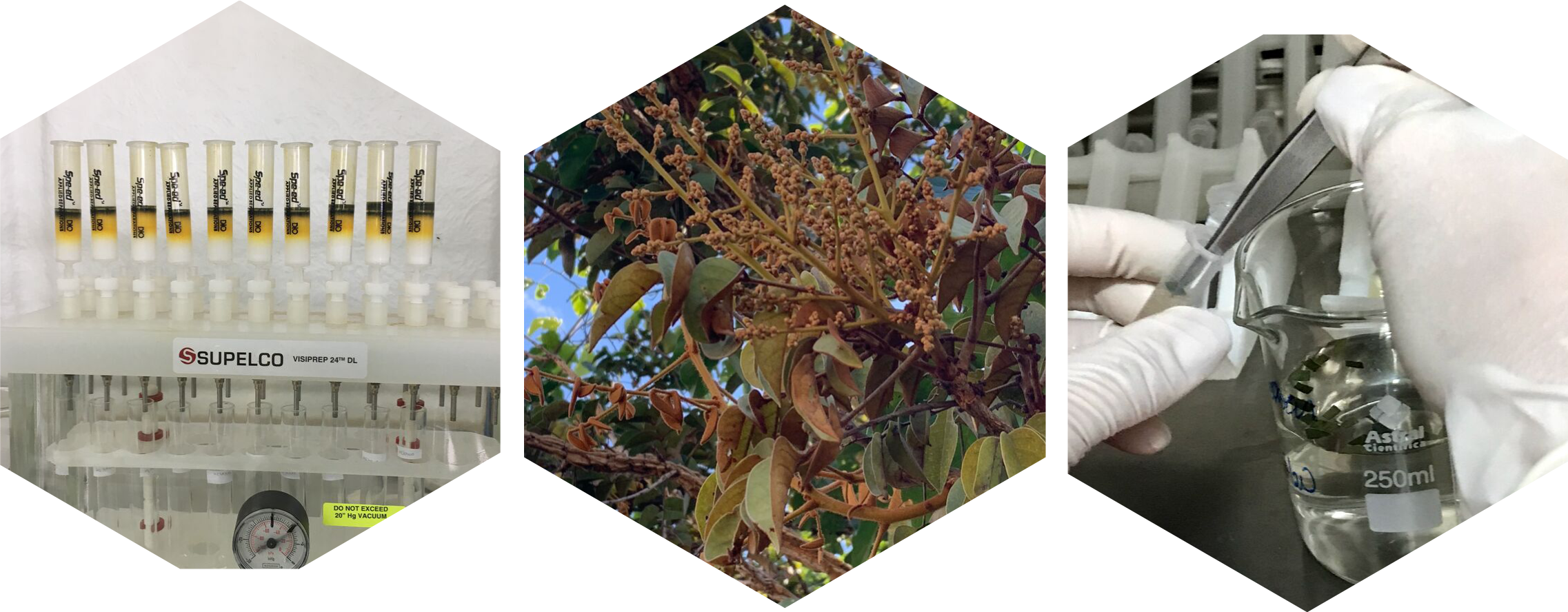 Connarus suberosus Planch. (Connaraceae), conhecida popularmente por araruta do campo, é uma espécie do Cerrado brasileiro, sendo a mais comum do seu gênero. Essa espécie é pouco estudada e com grande potencial de obtenção de novas substâncias com atividade em formas imaturas e adultas de Aedes aegypti. O Banco de Extratos do Bioma Cerrado do Laboratório de Farmacognosia/UnB possui diferentes extratos dessa espécie com características distintas que possibilitam a descoberta de substâncias a partir de uma mesma planta. Um desses extratos teve sua atividade avaliada em larvas de Aedes aegypti, culminando no isolamento de três diferentes substâncias.
